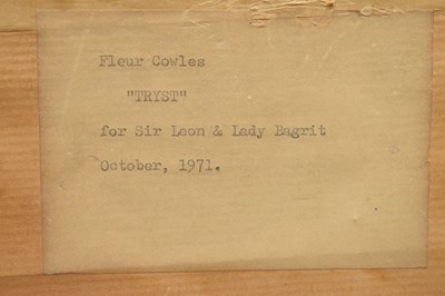 Label verso: 'Fleur Cowles 'Tryst', for Sir Leon and Lady Bagrit, October 1971'