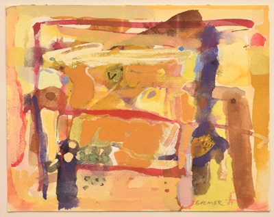 Lot 468 - ARR Peter Markey (1930-2016) - Emulsion on board – 'Tree in Blossom, 1990'